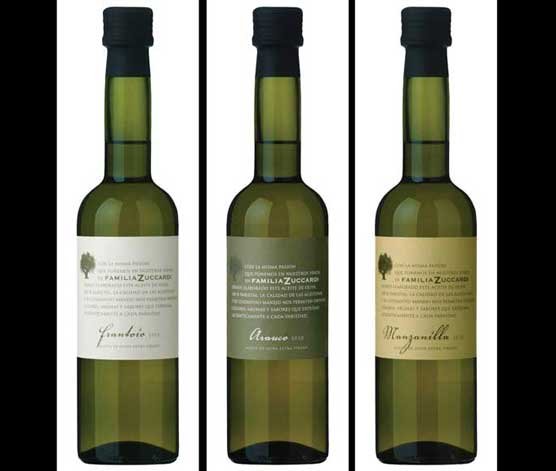 Familia Zuccardi Manzanilla: Variedad originaria de Andalucía, España, fue introducida en Argentina aproximadamente en 1940. Es de color amarillo con leve tonalidad verdosa y sabor frutado que recuerda la cáscara de manzanas, tiene un agradable amargo, con final ligeramente picante y fresco. Es recomendado como aderezo de pescados a la parrilla, sopas bien sazonadas y verduras grilladas.