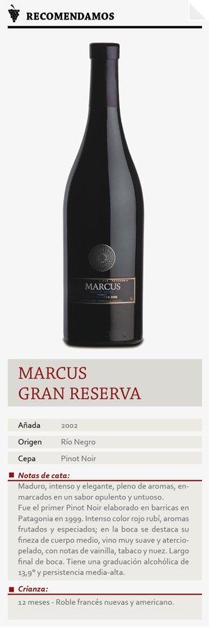 La línea de productos de alta gama de la bodega son los Marcus Gran Reserva, en sus varietales Malbec, Merlot, Cabernet Franc y Pinot Noir. Se trata de vinos de excelencia caracterizados, en principio, por la antigí¼edad de los viñedos, la selección de las uvas, el pormenorizado proceso de elaboración. La crianza se realiza por un período que va de los 10 a los 14 meses en barricas de roble francés y sus cualidades más notables son los colores intensos y los aromas frutados y profundos, además de su largo y particular final en boca.
