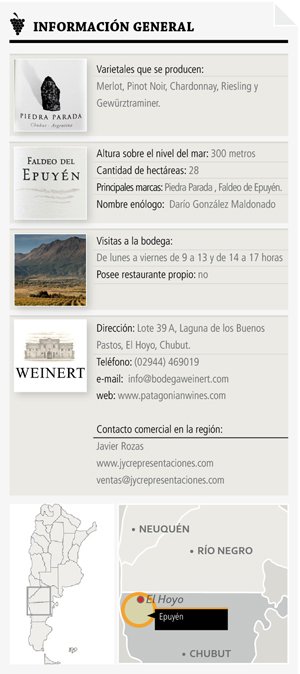 La bodega más austral de la Argentina (y de América toda) se ubica en la localidad de El Hoyo, provincia del Chubut, a escasos 18 kilómetros de la rionegrina población de El Bolsón. Su nombre, bien conocido, es Patagonian Wines S.A. Su propietario es Bernardo Weinert.