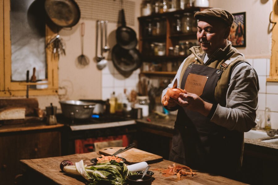 -Hay un imaginario de Patagonia que yo entendí recién cuando estuve fuera de ella. Cuando estoy acá todo es tan arduo, tan entretenido y dramático al mismo tiempo…! Para el imaginario mundial la Patagonia es el fin del mundo, la última frontera. En realidad, Bariloche tiene todas las comodidades de una ciudad para los que eligen vivirla así. Pero para mí, como fanático de Julio Verne, Patagonia es elegir vivir mi propia aventura en un lugar inconmensurable en el cual si te salís de una picada te perdés, ir a trabajar es ponerme la ropa de agua, las raquetas, los grampones y ¡me juego la vida! Yo prefiero hacer eso. Y cuando llego a la montaña tengo que poner palos a la estufa, calentar todo y darte de comer. Y eso que estoy sirviendo tiene que estar riquísimo, ser re sano y tiene que tener sentido. Porque, como para cualquier artista, para un cocinero la comida es su obra. Porque, al final, lo que te justifica es tu obra. Si me preguntás ¿qué es la Patagonia? Me encanta la Patagonia, soy feliz acá. Y todo eso que me pasa en el exterior le da cada vez más sentido a mi vida acá.