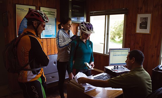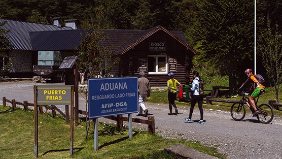 En Puerto Frías, se encuentra la Aduana argentina, que nos despide luego de hacer nuestros papeles y nos abre las puertas a nuestra primera cuesta, 4 kilómetros de camino sinuoso dentro del bosque que sorprenden al cuerpo y a la resistencia con una subida pronunciada pero no imposible. La divisoria de aguas marca el punto más alto de la travesía y al regreso se sentirá como el Arco del Triunfo. Pero eso es historia para otro día. Esos primeros kilómetros nos permiten distendernos buscando el hito que marca el límite entre Chile y Argentina: abandonamos el Parque Nacional Nahuel Huapi e ingresamos al Parque Nacional Pérez Rosales.