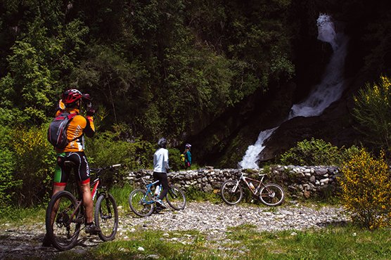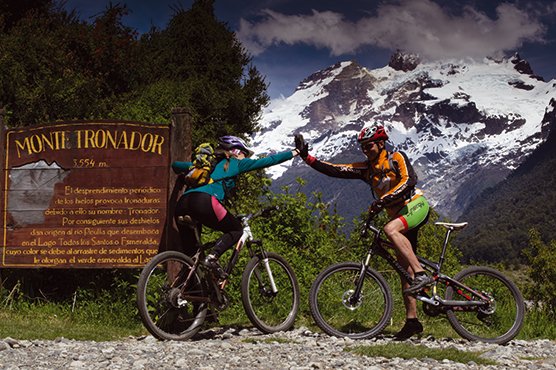 De a poco comienzan los primeros indicios de que “la cuesta” se rearma, toma forma y se presenta sin previo aviso, imponente. El Tronador a la derecha es una postal y anuncia lo que se da a llamar “la madre de todas las cuestas”. Los 9 kilómetros que nos separan del “Arco del Triunfo” son a prueba de perseverantes y decididos. Pero apenas las primeras curvas quedan detrás, el ego se enaltece y la selva casi empuja tanto como uno. Sus lianas, que parecen salidas de las películas de Tarzán, le sirven a nuestro equipo para improvisar una ayuda estratégica. Las imágenes, que pasaron veloces a la ida, ahora permiten el detalle. El lugar es un mundo de contrastes y colores. Nada parece estar quieto. El agua que amenaza con mojar nuestra marcha, nos brinda una fresca compañía. El plan es perfecto, el momento ideal, casi como si no estuviéramos allí. Pasamos. Entre la fauna y la flora nos perdemos pedal a pedal, respiro a respiro, soñando con la gloria pero disfrutando el desafío. Pronto, casi por sorpresa y luego de unas cuantas paradas estratégicas, la primera rueda encuentra en el horizonte, el gran marco de troncos que en algún momento significo la entrada a otro parque, la divisoria de aguas, el límite de países. Pero todo ahora se llama “felicidad”… Sin duda, un momento sin precedentes para los amantes de los buenos desafíos.