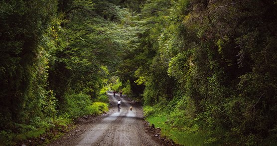 Desde el arco hasta el destino final de nuestro día, todo es bajada. Una travesía increíble, a paso veloz, de los primeros 9 kilómetros, con todos los ingredientes de un momento único. Deporte, adrenalina y paisaje. La selva se hace notar cada vez más: su humedad, su frondosa vegetación inseparable, sus ríos y la sensación tan particular de ya sentirnos en tierra chilena. Algunos caseríos dispersos en los fundos rompen con la imagen natural y marcan el cuadro de los 14 kilómetros restantes de viaje. Un camino más plano aunque en bajada nos permite disfrutar casi sin esfuerzo de todo lo que hay para ver.