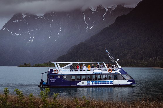 La travesía comienza en Puerto Pañuelo. Navegando entre los cerros hacia el corazón de la cordillera se llega a Puerto Blest.