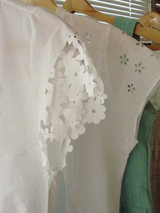 Últimamente implementó el laser para dibujar y cortar guardas sobre algodones y tafetas. Y es que la parte del dibujo creativo y la composición de moldes es lo que le exige menos esfuerzo. Evidentemente haber concluido la carrera de Diseño de Interiores en la ORT, con su marcada orientación técnica, ha dado sus frutos. Trabaja proyectando moldes-bases a los cuales le va paulatinamente sumando determinaciones y variantes. Elabora dos colecciones por año en las que prefiere una paleta reducida –en general de colores añejados- para después combinar las distintas texturas, telas y capas superpuestas. Confiesa que lo único que no hace es el trabajo de costura si bien sigue meticulosamente y de cerca lo que le encarga a otros.