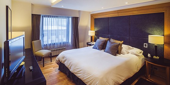 Rincones de lectura, pequeños livings y grandes espacios, reciben al pasajero y lo acompañan durante toda su estadía. Un amplio lobby con chimenea ideal para la recepción de grandes grupos, check in personalizados y welcome drink para homenajear el arribo de los pasajeros. Tiene 95 habitaciones (clásicas y superiores) que están diseñadas funcionalmente con un espacio para cada necesidad, muchas de ellas con excelentes vista al lago Nahuel Huapi y la Cordillera de los Andes.