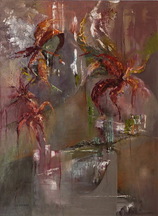 A través de diversas formas, colores y texturas, Adriana Orlandi pinta su mundo interior. Su obra resulta una búsqueda por los “recovecos casi laberínticos” de su ser para encontrar no sólo una forma de expresión pictórica, sino una declaración de sentimientos y emociones.