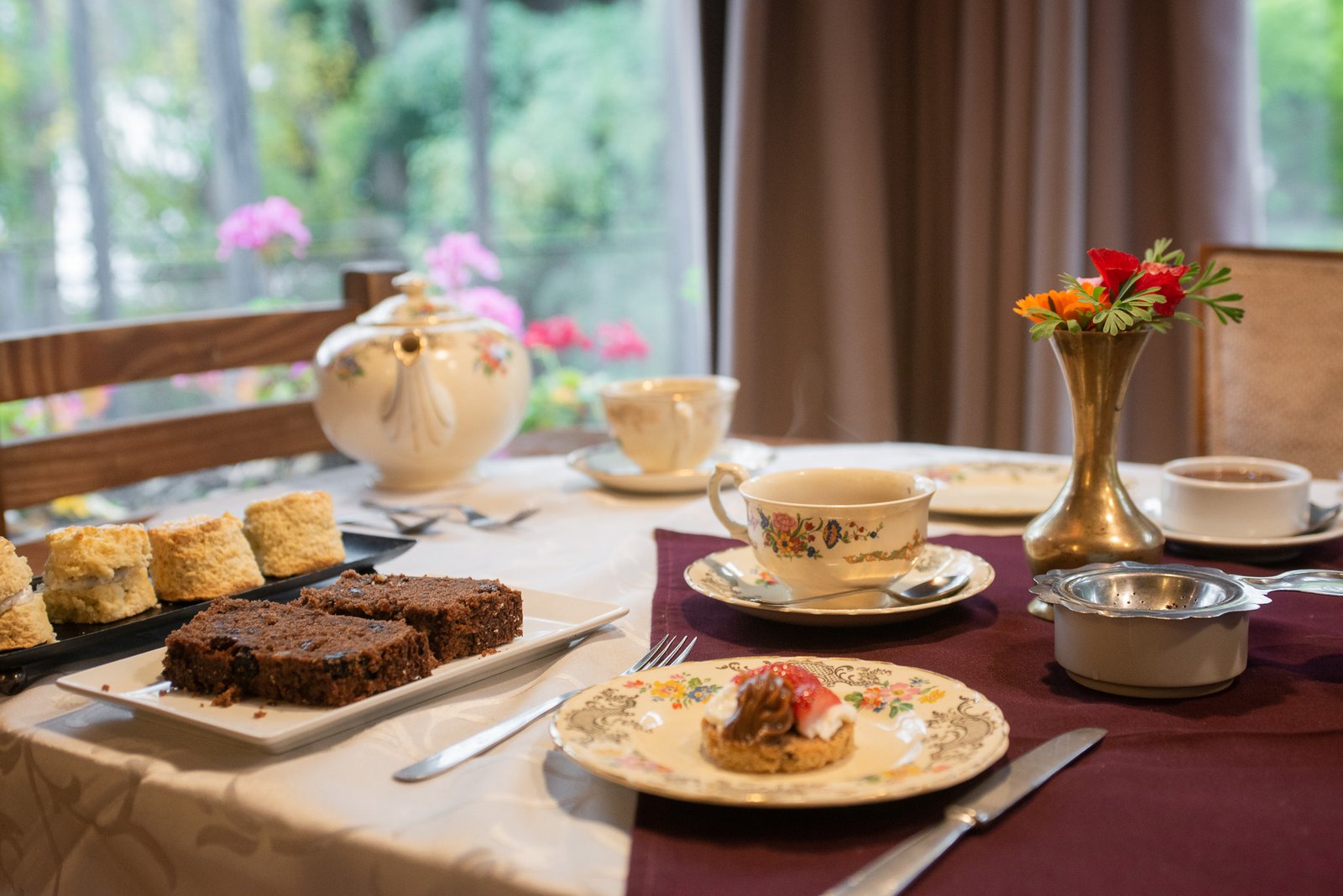 Cada mañana, Elfie elabora artesanalmente las preparaciones que integran el desayuno para la posada y el servicio de té: panes, scons, distintas tartas dulces y la famosa torta galesa. Todo se sirve con té negro orgánico en hebras, pasta de ciervo y cremas saborizadas y dulces y mermeladas caseras elaboradas con los frutales que hay en la propiedad. Además, cuentan con una huerta orgánica, jardín de aromáticas, plantación de lavandas y gallinas ponedoras. “Somos una hostería verde certificada, fue un trabajo muy intenso de dos años y año tras años nos auditan a fin de mantener la calidad y la certificación”, explica Elfie. “Tenemos biogestores para la cocina, guardamos el agua de lluvia para riego, nos abastecemos del agua de vertiente que es bien pura y elaboramos shampú y jabones para la posada de manera orgánica con la lavanda que producimos aquí mismo. Todo se recicla, hacemos compost para las plantas y la huerta y los deshechos de la cocina son alimento para las gallinas”, señala.