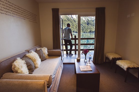 El hotel cuenta con 15 modernas y confortables habitaciones, entre standard y suites, hechas “a nuevo”. Todas cuentan con vista al río Frías o al lago Nahuel Huapi. Su decoración es elegante y minimalista y predominan los colores claros y los tonos tierra. Como detalle distintivo, en las paredes de cada habitación hay una frase del perito Francisco Moreno, padre de nuestros Parques Nacionales. Es importante destacar que el hotel cuenta con una habitación adaptada para pasajeros con movilidad reducida, rampas de acceso y un ascensor. En ninguna habitación hay televisor pues la intención es desconectarse de la cotidianeidad: sólo vale “mirar” el paisaje. Únicamente en el play room del hotel hay TV con Directv. Una de las modificaciones más sustanciales fue la construcción de un nuevo piso superior con habitaciones más amplias y un área de spa, con un gran jacuzzi con vista a la bahía.