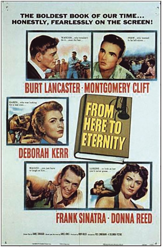 En este contexto, Sinatra consigue un papel en la película de Fred Zinnemann, From Here to Eternity, en 1953, que se basada en una novela de James Jones. La actuación que le valió un Oscar al Mejor Actor de Reparto y un nuevo contrato de siete años con Capitol Records. La película cuenta la historia del soldado Prewitt (Montgomery Clift), en 1941, en la base militar de Pearl Harbour, en Hawáii. Debido a sus habilidades como boxeador retirado, su capitán intenta reclutarlo para que pelee representando a su compañía. Prewitt se niega. Esta actitud tiene como consecuencia una serie de humillaciones por parte de sus superiores para que cambie de parecer. Prewitt solamente contaba con su amigo Ángelo Maggio (Frank Sinatra) como apoyo. Al mismo tiempo, el sargento Milton Warden (Burt Lancaster), segundo al comando, se enamora de la esposa (Deborah Kerr) del capitán Holmes (Philip Ober). Nadie lo sabe pero el ataque japonés era inminente. El elenco, extraordinario.