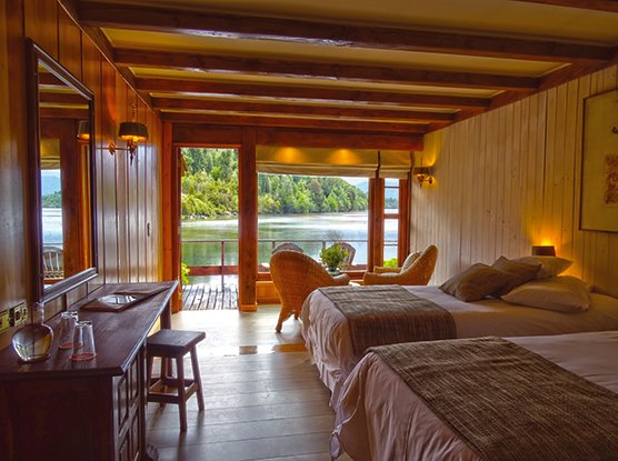 El lodge respeta en un todo al sitio que lo rodea. Y su planteo filosófico se desarrolla respetando ese sentido “no escrito”. No existe allí la posibilidad de conectarse a Internet o de mirar televisión. Cada una de sus habitaciones dobles ofrece una pequeña sala de estar y con una terraza que siempre miran hacia el mar. Y no es casual que el agua caliente de los cuartos y la calefacción provengan de fuentes de agua termal: precisamente sus piletas termales exteriores, ubicadas sobre las orillas de un fiordo, se transforman en una invitación ideal para disfrutar del momento independientemente de las circunstancias: no importa que sea en medio de una llovizna austral o bajo un cielo estrellado. Lo que sigue, va de suyo: una espectacular e inolvidable zambullida en el mar.