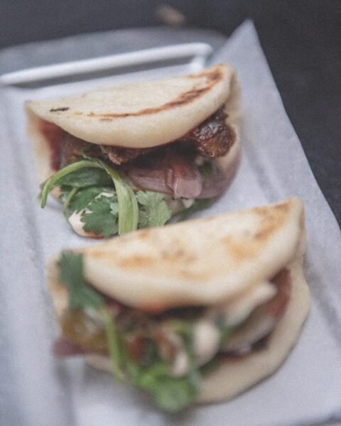 – Bao de pechito de cerdo, pickles y hoisin de frutilla.