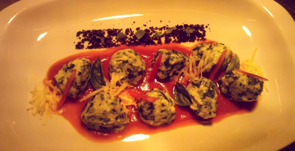 Malfattis de ricota y espinacas con Coulis de tomate y albahaca fresca