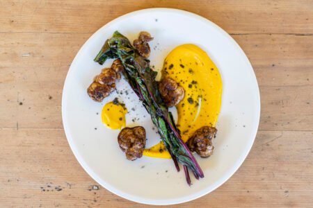 Trabajar con productos de cercanía es algo de Pablo aprendió mientras se formaba en la cocina del Hotel Austral, a cargo de chef catalán Joan Coll. “En Molle Verde buscamos ingredientes frescos de estación, por eso, hacemos alianzas con productores de Comodoro, de Saavedra, de Camarones, de Caleta Córdova y de Sarmiento, quienes conocen bien la temporada de cada producto”, explica Soto.