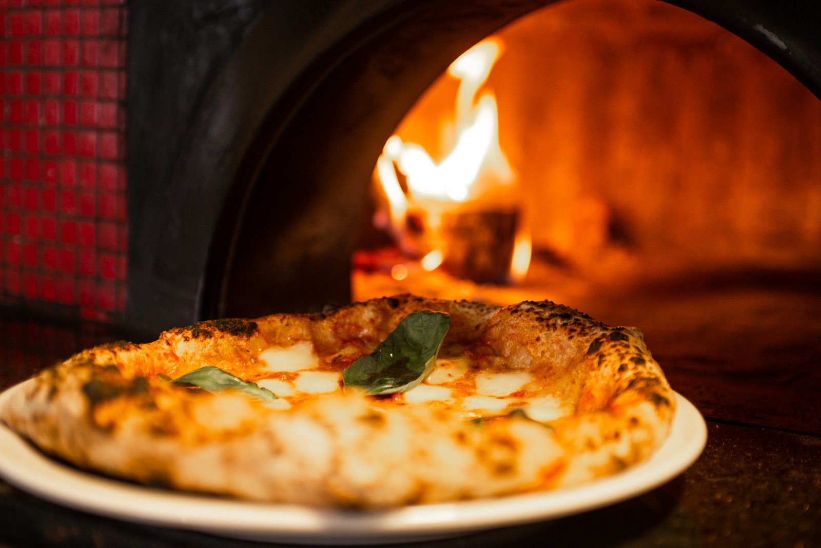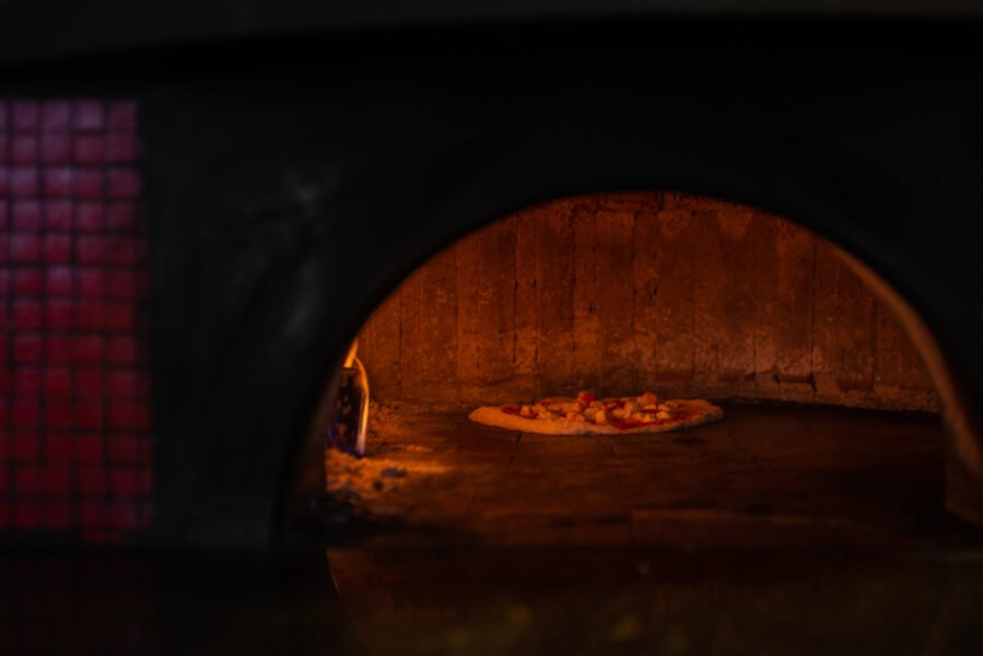 Esta gran pizza se cocina en un horno especial que compraron especialmente en San Juan que está hecho para cocinar a temperaturas muy altas en tiempos muy cortos por eso es que se hace bien el cornicione – el borde típico alto y crocante de este estilo de pizza. pero ahí reside gran parte de la magia. Es un horno mixto que usa tanto leña como gas.